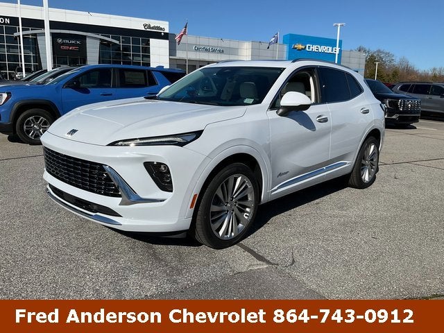 Fred Anderson Chevrolet Buick GMC is pleased to offer this attractive-looking 2026 Buick Envision Avenir in Iridescent White Tricoat and Gray Seats With Slate Blue Interior Accents Interior. Check out all these great 3.47 Final Drive Axle Ratio, 30 Diagonal LCD Display, 4-Wheel Disc Brakes, 9 Speakers, ABS brakes, Adaptive suspension, Air Conditioning, Alloy wheels, AM/FM radio: SiriusXM, Auto High-beam Headlights, Auto-dimming door mirrors, Auto-dimming Rear-View mirror, Automatic temperature control, Bose Premium 9-Speaker Audio System Feature, Brake assist, Bumpers: body-color, Compass, Delay-off headlights, Driver 4-Way Power Lumbar Seat Adjuster, Driver 8-Way Power Seat Adjuster, Driver door bin, Driver Seat Massage Control, Driver vanity mirror, Dual front impact airbags, Dual front side impact airbags, Ebony 1st and 2nd Rows All-Weather Floor Liners (LPO), Electronic Stability Control, Emergency communication system: OnStar and Buick connected services capable, Exterior Parking Camera Rear, Four wheel independent suspension, Front anti-roll bar, Front Bucket Seats, Front Center Armrest, Front dual zone A/C, Front Passenger 4-Way Power Lumbar Seat Adjuster, Front Passenger 8-Way Power Seat Adjuster, Front reading lights, Fully automatic headlights, Garage door transmitter, Heads-Up Display, Heated door mirrors, Heated Driver and Front Passenger Seats, Heated front seats, Heated rear seats, Heated steering wheel, Illuminated entry, Knee airbag, Leather steering wheel, Low tire pressure warning, Memory seat, Navigation System, Occupant sensing airbag, Outside temperature display, Overhead airbag, Overhead console, Panic alarm, Passenger door bin, Passenger vanity mirror, Power door mirrors, Power driver seat, Power Liftgate, Power moonroof, Power passenger seat, Power steering, Power windows, Premium audio system: Buick Infotainment System, Quilted and Perforated Leather-Appointed Seat Trim, Radio data system, Radio: Infotainment Center, Rear anti-roll bar, Rear reading lights, Rear seat center armrest, Rear window defroster, Rear window wiper, Remote keyless entry, Security system, SiriusXM Trial Subscription, Speed control, Split folding rear seat, Spoiler, Steering wheel mounted audio controls, Telescoping steering wheel, Tilt steering wheel, Traction control, Trip computer, Variably intermittent wipers, Ventilated Driver and Front Passenger Seats, Ventilated front seats, Wheels: 20 Alloy with Pearl Nickel Finish, and Wireless Apple CarPlay/Wireless Android Auto.