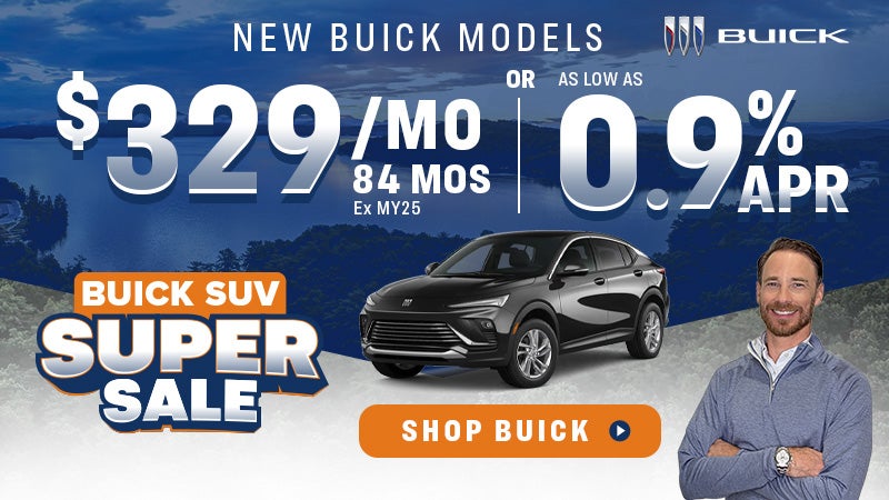 Offer excludes tax, tag, title, license, insurance & $549 closing fee; Offers valid with approved credit for qualified customers, not all will qualify; Payments as low as $329/month based on 84 months, not a lease, Ex MY25 Envista Preferred, Stock SB230696, MSRP $27,320, $27636 total monthly payments, payments include all applicable rebates & incentives; 0.9% APR valid on select MY25-MY26 Buick models with approved credit, not all customers will qualify & not valid with some other offers, see dealer for details. Offers end 03/02/2026